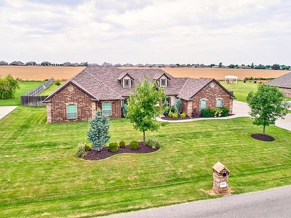 This is the one!!! Gorgeous 4 bedroom 2.5 bath home in sought after Riata Ranch neighborhood located in the Tuttle School District. The home has curb appeal with a big beautiful yard and sits on just shy of an acre lot in the heart of the very family friendly gated community and has it all! The Kitchen is a dream that is a mix of beautiful wood work, tile, granite counter tops, a center island, and built in appliances. Wood work continues throughout the home in the living room, master bedroom and bathrooms. The master bedroom connects to a large master bathroom with Jacuzzi tub, his/her sinks, and an Australian style walk through closet with built in storage. The home has a dining room, office, wood burning fireplace, utility room, 3 car garage with a storm shelter, and so much storage throughout. With the outdoor fireplace and Oklahoma sunsets the spacious backyard is a place to relax or entertain.