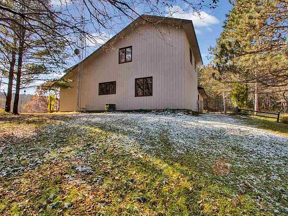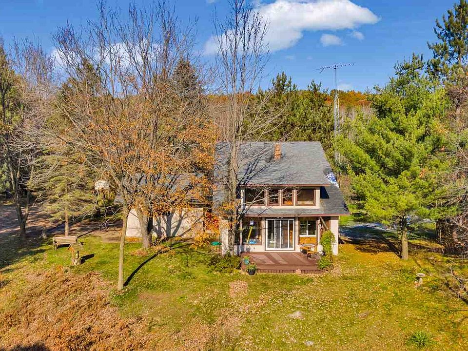 Picturesque! 3 bedroom, 2 bath home on 10+ acres with a pole building. Nestled between two ridges, down a long winding driveway sits this charming home. Enjoy ultimate privacy only minutes from Stevens Point. This house has a double north wall and a sunroom/solarium on the south side of the house characteristic of an envelope house or "house-within-a-house" design. The large expanse of south-facing windows and patio doors open onto a deck that overlooks the neighboring pond. The views from every direction are spectacular. Trails for walking, hiking and 4-wheeling meander through the property. The 26' x 36' pole building currently has a dirt floor. With some modifications, it could be great for additional parking or "toy" storage. The penned area in the back had been previously used for horses, which includes a door that opens onto the pasture. This property is heavily wooded and extremely private. The current owners have been blessed with successful hunts on this bountiful land. Seller updates during ownership include: freshly painted exterior, most of the interior has been painted, hardwood floors in the kitchen and upstairs bedrooms, newly tiled upstairs bathroom floor, and new carpeting. The sellers believe new shingles were installed around 5 or 6 years ago. Enjoy country living while being only minutes away from all of the amenities of town. The beauty of this property must be seen in person, so call today for your private showing.