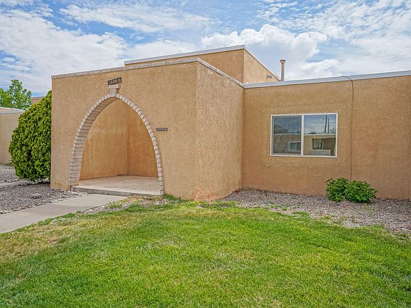 Adorable easy care living in 55 +cmmunity centrally locate in Rio Rancho close to shopping, dining & entertainment. Great room w/soaring beam ceiling gives added feeling of openness. Home has open kitchen with breakfast bar, 3/4 bath and nice size bedroom just steps from the on site laundry. Home has front patio and a large patio door in back leads to walled east facing back patio with storage. Appliances stay, TPO roof & furnace in 2020, new windows & water heater in 2019, cooler & carpet in 2018. Community features landscaped common areas & clubhouse. Professionally cleaned, painted and ready to go!