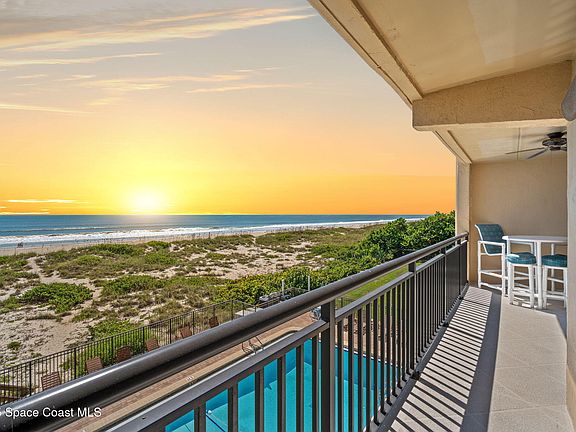NO pet weight restriction, NO assessments! Live the beach life in this prime Cocoa Beach condo with endless ocean views! Just steps to the sand and minutes from laid-back dining, parks, and the vibrant downtown scene. Bright and airy, the unit is filled with natural light and coastal vibes. The updated kitchen boasts granite counters, stainless appliances, and plenty of storage. The spacious family room flows to an oversized balcony through hurricane sliders—perfect for watching weekly rocket launches and sunrise coffee. The seaside primary suite offers balcony access, multiple closets, and an updated bath. A roomy guest bedroom and full guest bath make it easy to host friends. Extras include impact windows, shutters, in-unit laundry, plus community pool, gym, and clubhouse.
