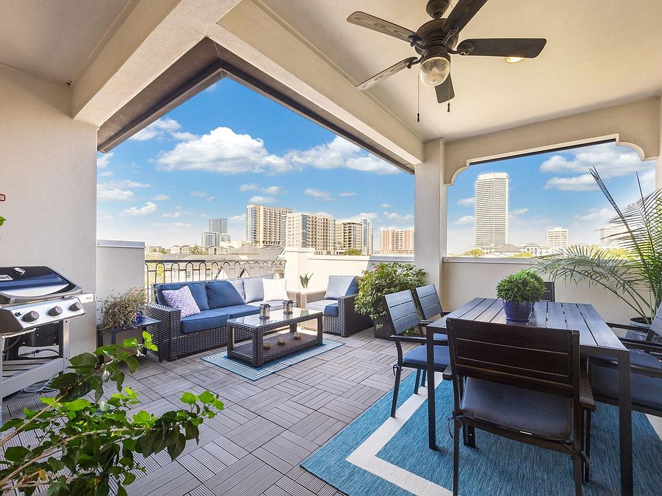 This gorgeous home boasts 3/4 bedrooms, 4.5 bathrooms, newly landscaped back yard w/premium artificial turf & Trex decking-perfect for entertaining (2025). The living area w/ FP is open to the dining room & kitchen complete w/balcony overlooking the trees. The kitchen features SS Meile appliances, dry bar, island & granite counters. Natural light fills the home creating a warm & inviting atmosphere. Located in a great close in neighborhood w/fabulous restaurants, shopping all within minutes of DT. All living areas & bedrooms are complete w/gorgeous hardwood flooring. The large primary suite features 2 walk-in closets, in-home safe & spa-like bath. 4th floor features a large living area/media room/4th bedroom w/full bath, wet bar & wine fridge all opening to a large covered roof top terrace w/gas connection & television ready! Enjoy the peaceful surroundings & stunning views of the Galleria & Allen Pkwy skylines. Ideal for relaxing & entertaining. Tankless water heater &Elevator Capable