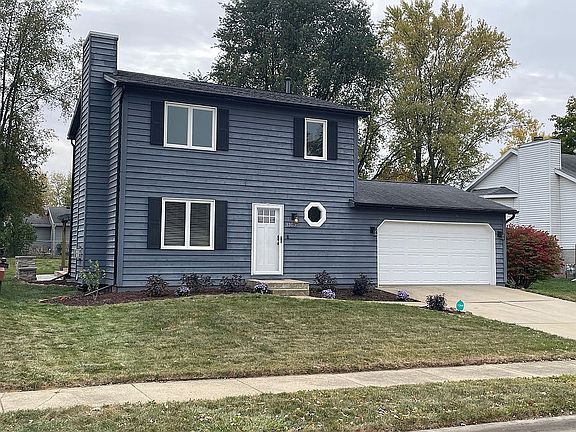 Three bedroom, one and one half bath 2 story home just about 1 mile from ISU and 3.5 miles from Rivian! Newer beautiful kitchen cabinets and hardware. Includes custom stone back splash, stainless steel appliances and newer Dishwasher. Living room with gas fireplace and attached dining room. Main floor laundry with washer and dryer stay. Partially finished basement offers an additional family room. Oversized 2 car heated garage includes a workbench that stays along w/ cabinets and vice. 2021 Garage Door. Complete with Honeywell whole house humidifier. A.O. Smith water heater, Heat-N-Glo Metro32 modern gas fireplace, new deck, new 4 by 8 attached storage unit and a concrete fire pit in the back yard.  Note the staged photos show some ceiling fans that have been replaced with new LED ceiling lights.  This house is setup as a smart house with a 3 node mesh wifi network, smart locks, a smart ecobee thermostat, and a smart automatic curtain rod.  It also has an LG a stainless French door refrigerator.