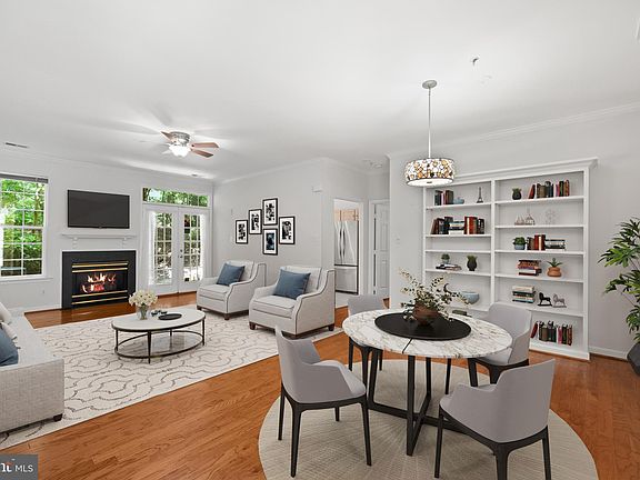 Beautiful one-level 2 bedroom, 2 bath condo nestled in the woods! Open & airy! Living and dining room include hardwood flooring Cozy gas fireplace in the living room Dining room includes built in book shelves Kitchen includes stainless steel appliances Primary suite includes walk-in closet with upgraded organizers Primary bath features dual vanities and upgraded tile Large second bedroom with convenient access to hall bath Laundry room includes full size washer & dryer plus huge storage closet. Direct access from the one car garage into the home HVAC replaced 2016; appliances replaced 2016 Great community amenities plus convenient access to commuter routes!