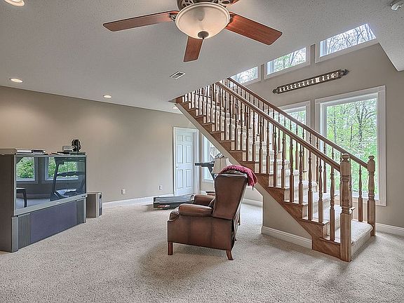 Peaceful and meticulously crafted, this home has features and upgrades you must see to appreciate. Entry and much of main level is hardwood with exquisite door trim. Deluxe kitchen with bar, desk/work station, additional eating area open to deck which overlooks wooded back yard and large koi pond. The back yard is very private with beautiful trees and perennials. The open floor plan includes a cathedral ceiling in living room with massive windows suggesting you relax by the fireplace while gazing outside. Separate patio accessible from lower level walkout. Oversized 3 car garage with storage. Egress window in unfinished basement ready for new owner to finish as bedroom or office. Before making an offer on any property, buyer should independently verify all MLS data, which is derived from various sources and not warranted as accurate.