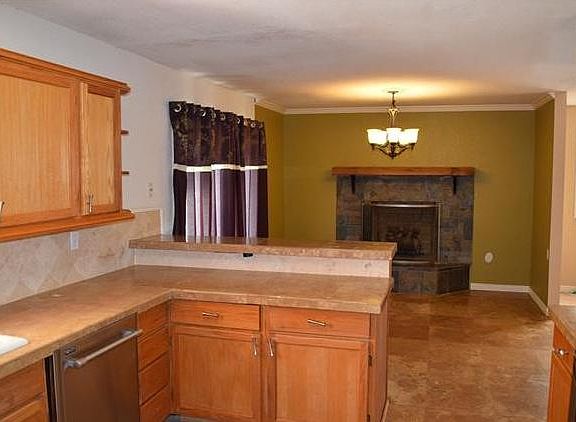 Value packed! Terrific kitchen with updated cabinets, appliances, built in microwave, travertine flooring and countertops. Updated baths. Central heat and air updated in 2009.Updated electrical panel box. Master bath has been nicely updated including a jetted tub. Den features a fireplace and updated Anderson patio door opens to slate patio.