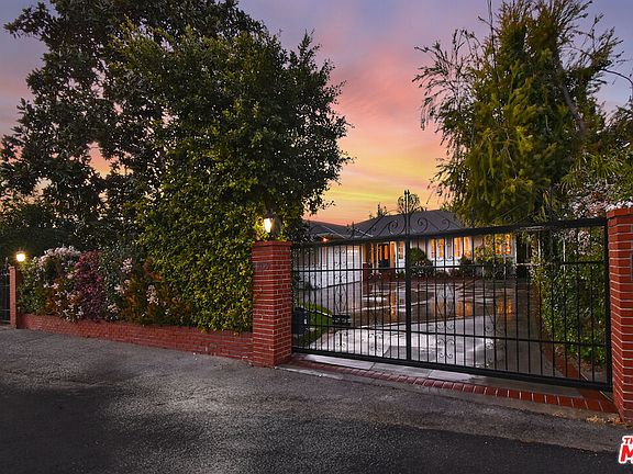 Stunning Mid-Century Ranch on a 10,306 sq ft gated lot with pool in the popular Hidden Woods pocket of Sherman Oaks, CA! With a gated circular drive and maturely landscaped front yard centered by a gorgeous Magnolia tree and striking front elevation, you'll be impressed right from the start. Step through the brick-covered front porch and into the formal entry with exquisite oak hardwood floors, and a captivating view extending to the end of the property. An expansive formal dining area easily accommodates 20 or more guests, while the adjacent living space boasts a designer fireplace including a marble hearth and rich wood mantle and French doors opening to the backyard, ample room for relaxation. A well-appointed kitchen features clean quartz counters, charming garden window, and cozy breakfast nook with modern chandelier, complemented by an adjacent laundry room with storage and direct access to the garage. An impressive family room awaits, boasting ample space for a large sectional, also with a designer fireplace, a flat-screen TV, and French doors leading to the grounds. Down the hall there are two spacious bedrooms each with custom light fixtures, plantation shutters, and generous closets, both sharing a well-appointed hall bath with standing shower and jacuzzi tub. The secluded primary retreat from it all is relaxing and offers a spacious three-quarter bath and great walk-in closet. And last but not least, the meticulously landscaped 10K private lot presents numerous possibilities, with the pool strategically positioned at the rear, allowing for a possible addition of a 4th bedroom or just enjoy the feel of an expansive estate-like setting. Down the street from excellent schools, great shops and restaurants and easy access to anywhere you want to be. Don't miss 13059 Addison Street!