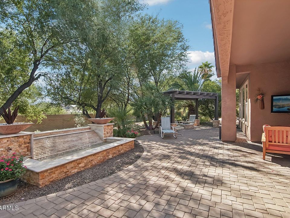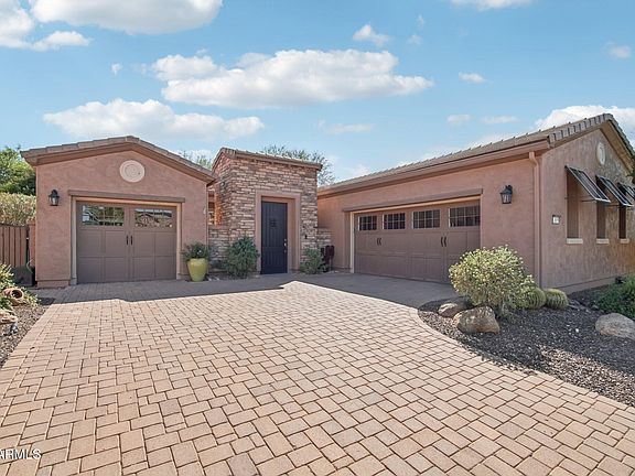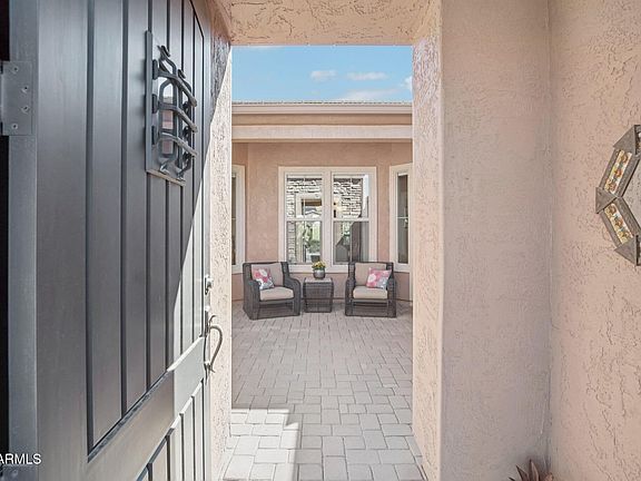 This Accredo is situated on an EXTREMELY PRIVATE lot that backs to an EXPANSIVE LUSH GREEN BELT & Beautiful Vegetation! Charming CURB APPEAL with a PAVER DRIVEWAY & STONE ACCENT ENTRY creates a PRIVATE FRONT COURTYARD! The floorplan features 2 bedrooms, 2 baths, POWDER ROOM, Den, Bonus Room & GOLF CART GARAGE! The Gourmet kitchen has a PREP ISLAND, high-end RAISED-PANEL cabinetry w/ LARGER CROWN MOLDING & glass door fronts, BUILT-IN GAS COOKTOP w/ Wall Oven & GRANITE SLAB w/ custom backsplash. Stunning Tile installed on the diagonal in all the right areas & designer touches all around. Owner's Suite is amazing w/ QUARTZ C-TOPS, Framed Mirror, MASSIVE TILE SHOWER w/ HEAVY GLASS DOOR & a CUSTOM CLOSET w/ tons of storage. The back patio is extended w/ PAVERS, includes a soothing water feature & BUILT-IN BBQ & GAS FIREPIT w/ PERGOLA! Add'l Upgrades: FIREPLACE in Great Room, OWNED SOLAR, high-end lighting & fans, SURROUND SOUND, Laundry w/ Cabinets & SINK and a pristine GARAGE w/ EPOXY FLOORS & STORAGE! This home will not disappoint - a must see!