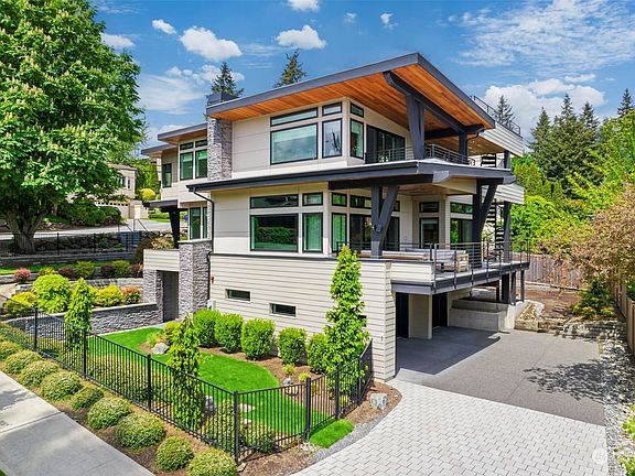 Kirkland East of Market living at its finest. Luxurious contemporary architecture blends w/cozy elements to create the ultimate NW living experience featuring 5 beds/5 baths. Elevated finishes, designer lighting, vaulted ceilings, floating staircases & 8ft drs. Light-filled great rm w/abundant entertaining space, ample windows, dbl-sided gas fireplace & formal dining. Chef's kitchen w/quartz island, bar seating & high-end SS appliances inc. xlg Elextrolux fridge, Thermador oven, wine fridge. Owner’s suite w/prvt balcony, walk-in closet & 5-pc ensuite. Covered patio w/heaters & rooftop sun deck. Rec rm w/kitchenette, bonus/flex rm, 3-car garage, fully fenced yard, Wi-Fi controlled dual furnaces & A/C. Mins from waterfront/shops/restaurants.