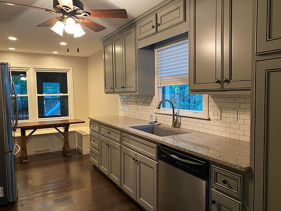 Home was renovated within the past few years, move-in ready one level with eat in kitchen, quartz countertops, large vaulted living space, and finished daylight basement with the 4th bedroom and 3rd full bath. Also on the main level are built in bookshelves for an ideal office space. Laundry on main level conveniently located next to master suite. Washer and dryer machines included. Fenced back yard includes a vaulted screened in porch and a playground for young families.