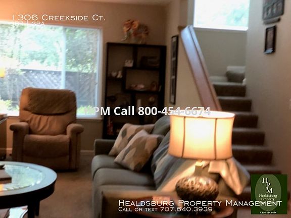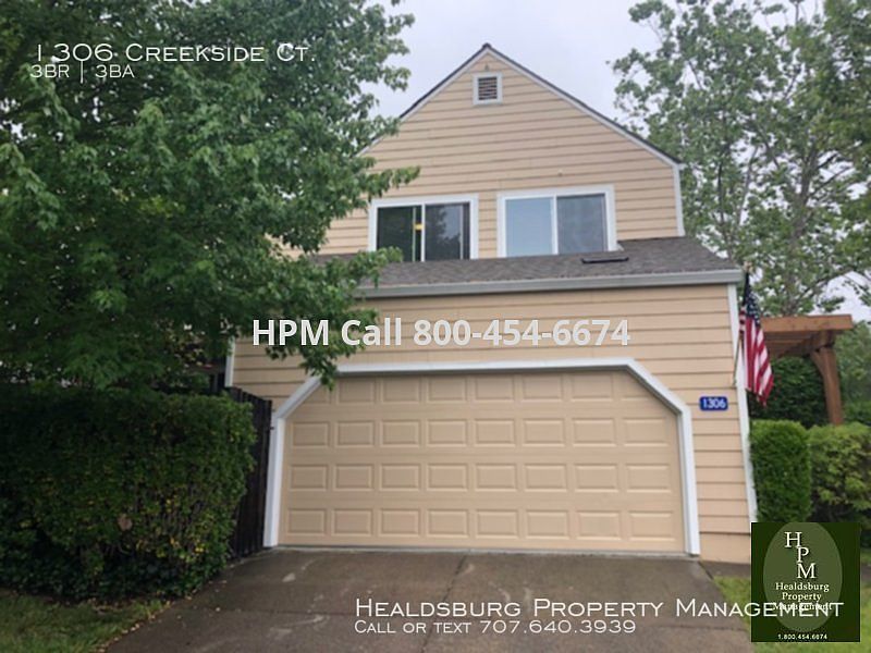 Well cared for Healdsburg 3BR/2.5BA two story home. Roomy living room with gas fireplace, remodeled kitchen with stove, refrigerator (as is), dishwasher and breakfast nook. Washer and dryer provided (as is). Upstairs are main bedroom and bath, and two guest bedrooms with shared guest bath. Carpeted throughout except kitchen and bathroom areas. Half bath downstairs. Manicured yard on drip irrigation, save a few potted plants. Two car garage. HOA features community pool and tennis courts. Small and medium size dogs considered with Pet screening.