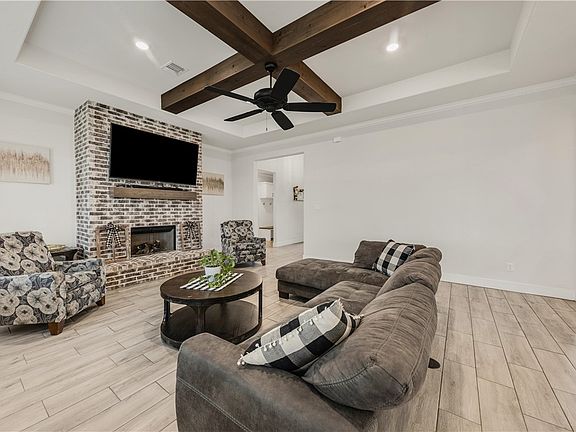 Discover serene living in the heart of College Station with this exquisite 4-bedroom, 2.5-bath home, perfectly situated on a quiet street in Waterford Heights. This prime location offers easy access to Baylor Scott and White Hospital and all the conveniences of south College Station. Step inside to an inviting open concept floor plan featuring elegant extensive wood-look tile. The living room, with its brick masonry fireplace and hearth, is bathed in natural light from a generous wall of windows, offering a seamless blend of comfort and style. The adjacent dining area flows effortlessly into a cook's delight kitchen, equipped with a gas cooktop, wall oven, expansive center island, and custom-built white cabinets for all your culinary needs. A large walk-in pantry provides ample storage for every gourmet ingredient. Privacy is afforded in the master suite, thoughtfully tucked away from the additional bedrooms, featuring a well-appointed en-suite bath. An additional half bath is conveniently located for guests. A versatile mudroom offers extra storage and closet space, ensuring your living area remains clutter-free. The dedicated laundry room not only simplifies chores but also provides additional workspace. Outside, the large lot provides a sprawling backyard with no rear neighbors, offering a peaceful retreat for outdoor activities. This property promises tranquility with the benefits of a prime College Station locale.