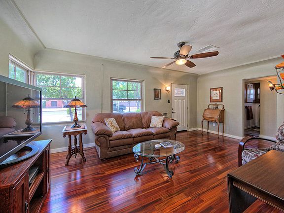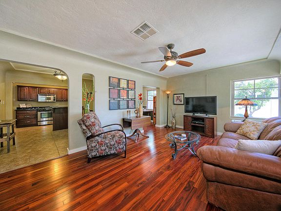 This home boasts 1,532 square feet with 3 bedrooms and 1.75 bathrooms all located on an ideal North/South exposed lot. Numerous enhancements can be found throughout this home such as; energy efficient dual pane windows, coffered ceilings, a spacious den perfect for a home office or fourth bedroom, a newer 15 seer A/C unit, fully remodeled bathrooms, and wonderful Brazilian Koa hardwood flooring. The complete guest quarters is 386 square feet with a cute kitchen, a 3/4 bathroom, and nice hardwood flooring. The gourmet kitchen has been newly remodeled with stunning cherry cabinetry that beautifully contrasts against stainless steel appliances and gorgeous granite counter tops. The cozy backyard embodies a lush green grass lawn, a nice shaded seating area, and a high block wall for privacy!