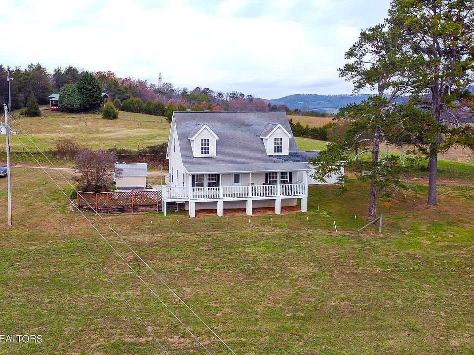 The home with its 10 acres has 3 bedrooms and 2.5 bathrooms with an eat-in kitchen, living room with gas fireplace, primary bedroom with ensuite bathroom and oversized walk-in closet , half bathroom, and laundry room all on the main level. Upstairs, there are 2 large bedrooms with impressively large closets, and a shared bathroom. The small mud room on the back of the house will catch all the boots and coats keeping the stress and mess out of the house. The rocking chair front porch spans the width of the entire house - the perfect spot to overlook the front pasture and take in those gorgeous east TN views!