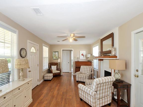 Step into this timeless classic Old Florida-style home, set on an X flood zone lot and featuring rich hardwood floors throughout much of the interior. Two generous living areas, each with direct access to the backyard, offering excellent flexibility for entertaining, relaxing, or multi-generational living. Cozy up beside the fireplace in the main living area, while the second living space at the rear of the home offers easy conversion into a second master suite, complete with an existing half bath and space to add a shower. The kitchen offers stainless steel appliances, pantry space and a coffee bar, coupled with bar seating that seamlessly connects to the expansive formal dining area. The master suite includes a large walk-in closet, a spa-inspired bathroom, and laundry. The second bedroom is ample size, neighboring the 2nd full bath. Enjoy outdoor living on the welcoming covered front porch or host gatherings on the back deck overlooking the backyard, shaded by a stunning and mature magnolia tree. A storage building and lean-to provide added utility. Ideally located just a golf cart ride from local schools, churches, downtown, and the beautiful St. Joseph Bay, this home combines classic character, unbeatable convenience, and endless potential. Sold fully furnished, this home is only missing you and your suitcase!