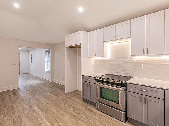 This newly renovated 4 bedroom, 2 bath home has an open layout and comfortable living spaces. Ten foot ceilings in the master bedroom and common areas create a sense of space. You'll find custom soft close cabinets, LED mirrors, and a stand up shower among the thoughtful details. Outside, there's a private parking area and a fenced backyard. It's a fresh, updated property ready for you to make your own.