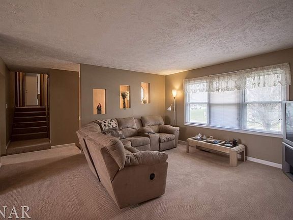 Great quad-level located in well established neighborhood with no backyard neighbors. This home has a large living room, great for conversation with friends and family. The eat-in kitchen has great storage and ample countertops. The second floor offers 3 bedrooms and 2 full bathrooms. The lower level is newly finished with brand new carpeting, trim, paint, and a half bath. The oversized garage (28x26) has plenty of space for cars and extra storage. This home offers a lovely wood burning and gas fireplace. Enjoy the warm weather from the deck. Close to ISU, shopping, entertainment and more.