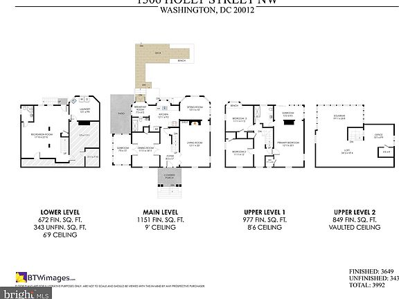 Welcome to 1306 Holly St NW – a charming Shepherd Park home offering nearly 4,000 square feet of living space across four finished levels. With 4 bedrooms, 3 full baths, and generous indoor and outdoor areas, it’s thoughtfully designed for comfortable everyday living and easy entertaining. The main level features high ceilings and lots of natural light. There is a spacious living room with a fireplace and Berber carpeting, a formal dining room with hardwood floors, and a sunroom just off the dining room. The eat-in kitchen features a bay window overlooking the expansive and beautifully landscaped back yard. Enjoy your morning coffee in the breakfast nook or in the sitting room off the kitchen, both with views of the garden. There is also a full bath with shower and pocket door discreetly located off the kitchen for added convenience. Upstairs, the second level features three generous bedrooms and a full bath with recently updated walk-in shower. The full bath is accessible from both the hallway and the primary suite. The spacious primary bedroom can easily fit a king size bed and features a mini-split for cooling, hardwood floors and a sun porch, offering southern exposure and tranquil views of the lush 7,000+ sq. ft. yard. On the third level is a finished three-season room with solarium windows and tree-top views! Use this space as your private retreat, creative space, home office(s) or bedroom. There is also a mini-split that serves this level. The lower level is also extremely spacious, featuring a large recreation room, full bathroom with shower, laundry room with side-by-side washer and dryer, a workshop, extra refrigerator, and ample storage. It would be easy to update this space to add a bedroom and still have plenty of room for a recreation space. Step outside to the beautifully landscaped, fully fenced backyard, complete with a deck—ideal for entertaining, gardening, or play. The property also includes a one-car garage for added convenience. Additional highlights include a mini-split cooling system on the 3rd level and in the primary bedroom, solar panels for lower electrical bills, a newer roof (approx. 2017), new water heater (2024), 200-amp electrical panel in the basement and an additional electrical sub panel on the attic level, and classic architectural charm. Perched on a high point across from Marvin Caplan Park, the home enjoys unobstructed views and a peaceful setting. It’s just blocks from Whole Foods, Starbucks, and the shops and restaurants at the Parks at Walter Reed, with easy access to nearby bus routes and less than a mile to the Takoma Metro. Rock Creek Park is also close by, offering trails and green space just minutes away. If you’re looking for a home with character and lots of SPACE, inside and out, look no further! This is truly an exceptional opportunity.