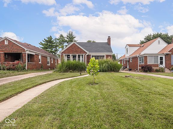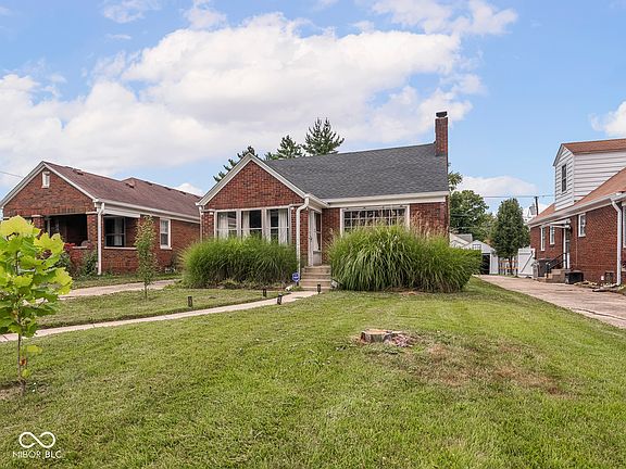COMMUNITY HEIGHTS // Nestled on a quiet block in Community Heights, this classic all brick bungalow offers enduring charm and solid potential. Step up to the inviting front porch which offers both an open sitting area and enclosed porch. Inside, original hardwood floors, a large picture window in the living room, a stone fireplace, and preserved midcentury details throughout create a warm, character filled atmosphere. The bright kitchen features vitrolite tile and has a nice flow. A dining room, two comfortable bedrooms, and a full bath round out the main level. The full unfinished basement has been professionally waterproofed, providing dry storage, laundry space, and room to expand. The deep backyard is fenced except for across the driveway. The roof is less than 3 years old. With good bones, vintage charm, and room to make it your own, this is a fantastic opportunity in a well-loved eastside neighborhood just blocks from parks, local shops, and the Irvington corridor.
