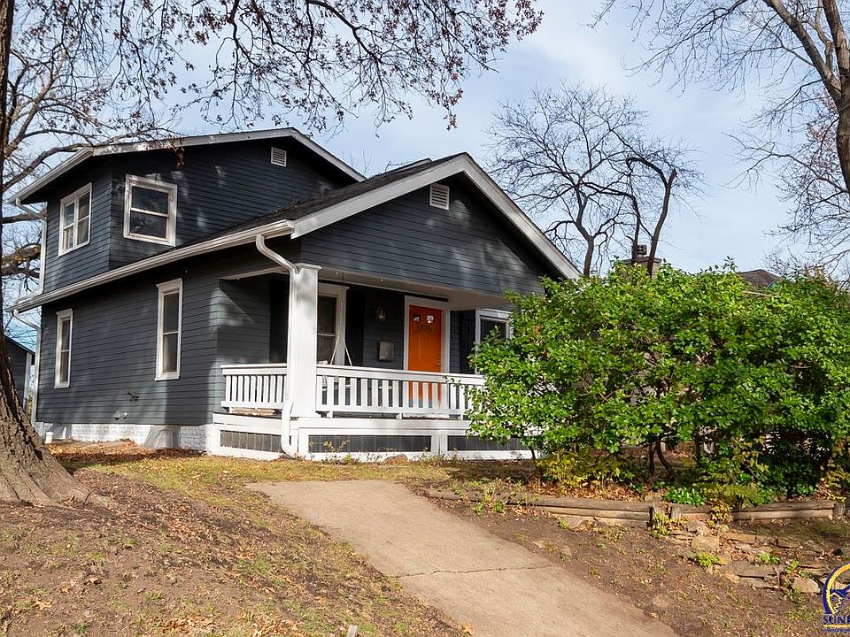 Lovely bungalow located in the Kenwood subdivision, just outside of Potwin. This charming home features a recently painted exterior (2025) and numerous improvements over the years, including refinished hardwood floors, updated interior paint, and refreshed kitchen and bathroom spaces. The main floor offers a formal living room. den area, full bath, & a bedroom with a sizable walk-in closet. Two additional bedrooms are located upstairs. Enjoy the large backyard with many trees along the back for added privacy. Additional important notes: new furnace in 2024 and foundation repairs 2022. The garage is more of a quaint storage building with carriage doors to complete this inviting property.