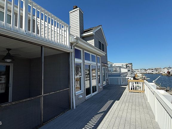 Waterfront paradise awaits with a wide-open, deep water lagoon view in Beach Haven West! Welcome to this beautiful 4-bedroom, 2.5-bath home, designed by architect Craig W. Brearley and built new in 2002, featuring express boat access to the bay and eastern exposure in back! Nestled right in the heart of Beach Haven West, this home is perfect for anyone looking for the relaxed coastal lifestyle. Interior highlights include: Main floor - beautiful hardwood floors throughout the open and airy floor plan, showcasing a bright kitchen with a stylish backsplash, a convenient laundry room and a cozy dining area opening to a screened-in porch to enjoy the summer breeze. The primary bedroom with slider to the rear deck includes a sizeable walk-in closet and a large full bath with whirlpool tub are right off the main living area which includes a wood-burning fireplace and cathedral ceilings open to the upstairs. 2nd floor highlights include three bright and airy bedrooms, one with a gorgeous walkout porch, perfect for taking in the fresh air along with access to additional storage and generous closet space, a full-bath and additional open space for a desk or a central sitting area. At ground-level you'll find incredible storage space with 2 front-facing garage doors and 1 rear-facing garage door. Property Includes an outdoor shower, whole-house natural gas generator and 50' of deep waterfront space. New vinyl bulkhead w/ wooden dock replaced in 2015. This house is a gem in BHW and is on an attractive lot with expanded canal views from the deck and desirable eastern exposure in the rear, offering the perfect setting for entertaining and enjoying views of anglers returning with their catch or families arriving back from a day on the water.
