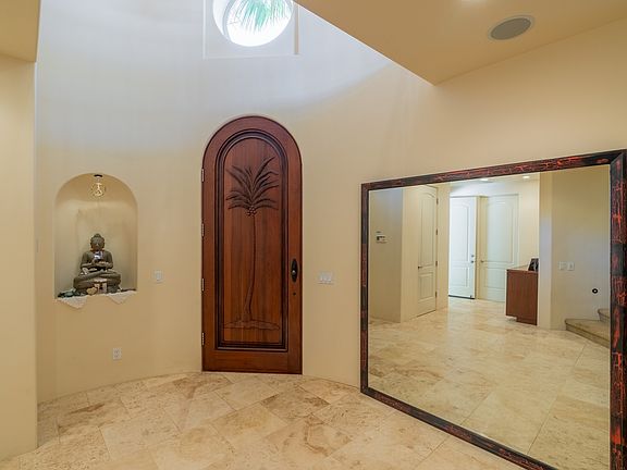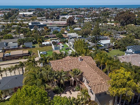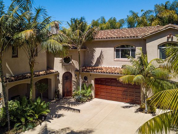 Seller to entertain offers between $1,195,000 - $1,345,000. Immaculate Tuscan style home with separate apartment with full kitchen, bedroom, bath, living room and single bay garage. Original owner/builder custom built. With many high end custom features including: Gourmet kitchen with Thermador appliances and Volga blue slab granite counters. Over 33 arches, wrought iron spiral staircase, No wood soffits, Plastic clad windows, 50 Year roof, two tank less water heaters. Home is energy efficient with dual heaters and AC. Master suite with balcony to enjoy ocean and sunset views. Beautiful master bath with extra-large walk in closets, custom built-ins and his and hers jewelry niches. Secondary master suite on main floor. Enter through private wrought iron gated driveway and pedestrian door down corridor of over 100 assorted mature palms. Beautiful Santé Fe stucco with custom 2 1/4" X 9'x 42" African mahogany wood door and Baldwin hardware. Garage and driveway concrete is 6' thick concrete with rebar. Home is wired with Cat 6 throughout. Foundation is raised allowing for floor heating and easy access. Wired for sound with speakers in all rooms and deck but downstairs his and her bedroom. A bird lover's paradise with tons of hummingbirds and Hooded Orioles. Apartment has ocean views and is plumbed and ready for condenser. Extra thick 5/8" Drywall, 2"x6" walls, over 33 custom arches throughout home, custom African mahogany kitchen cabinets. Master bath has granite counters, his and her sinks, large custom marble shower, custom his and her built ins in oversized walk in closet. Travertine floors in all rooms but bedrooms. Tropical courtyard with over 100 mature Cycad ferns, Kentia palms, King palms and Queen palms. Garage doors are a solid 2 1/4 Africa Mahogany stained wood doors. Three car extra deep 24' x 24' garage. Separate 3 rd bay great for apartment.