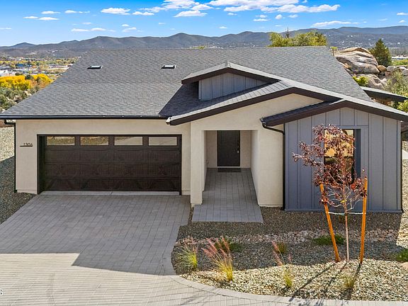 ''Discover the epitome of sophisticated living in this exceptional 1,649 sq ft home, nestled within the coveted 55+ Senior Community of The Preserve at Prescott. This meticulously designed residence offers a flexible 2-bedroom layout, complemented by a cozy den - perfect for both lively gatherings and peaceful retreats. With a low monthly HOA fee of just $25, this home harmoniously combines style, practicality, and affordability.As you step inside, you'll be embraced by an expansive great room that exudes warmth and elegance. The soaring 10-foot ceilings paired with a striking linear fireplace create an inviting atmosphere ideal for entertaining friends or enjoying serene evenings at home. Natural light floods the space through accent windows and sliding doors that lead to a covered rear patio and an extended Boulder patio, where panoramic mountain views await - a breathtaking feature that is truly rare.The heart of this home is undoubtedly the stunning kitchen, designed for both functionality and flair. It showcases a deep stainless steel sink, a sleek black pullout sprayer faucet, and top-of-the-line GE stainless appliances, including a gas stove/range equipped with convection and air frying capabilities. The custom two-tone cabinetry and chic tiled backsplash elegantly complement the white quartz countertops, creating an inspiring workspace for culinary enthusiasts. A versatile dining island invites casual meals, while the formal dining room is perfect for more elegant dining experiences.Retreat to the Primary Bedroom Suite, a sanctuary of relaxation that features a luxurious ensuite bathroom. Here, you'll find a floor-to-ceiling clear glass curb-less walk-in shower with a bench, dual sinks set on a beautiful quartz counter, a private water closet, and a spacious walk-in closet catering to all your storage needs. The second bedroom is equally inviting, featuring wood-toned porcelain plank tile flooring that flows gracefully throughout the home, a sunny front window, a ceiling fan outlet, and a sliding door closet. The second bath, adorned with contemporary black matte fixtures and a full tiled bath/shower combo, ensures convenience for family or guests.The versatile den/library offers an ideal space for productivity or leisure, with ample natural light streaming through the sliding door that leads to the covered paver patio. This scenic outdoor area is perfect for al fresco dining or lounging while soaking in the stunning views of the surrounding landscape.Completing this remarkable home is a thoughtfully designed laundry room equipped with a stacked GE white washer and dryer, a storage cabinet with a quartz countertop, and pre-plumbed for a laundry sink - adding an element of convenience to your daily routines. More than just a beautiful home, this property is designed with energy efficiency in mind, boasting Energy Star and Zero Energy Ready Home certifications. With solar prewiring and EPA Indoor airPLUS certification, you can enjoy peace of mind knowing that your living environment prioritizes comfort and health.The paver driveway leads to a convenient 2-car attached garage, simplifying your daily commute while providing ample storage. With 8-foot tall doors enhancing the open and airy feel throughout, this residence is the epitome of modern living.Don't miss the opportunity to own a home that embodies elegance, functionality, and sustainability in a prime location. Schedule your private tour today and discover the exceptional lifestyle that awaits you at The Preserve at Prescott!''