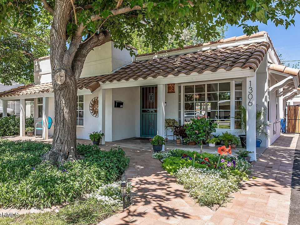 Welcome to 1306 W Heatherbrae Drive, a rare opportunity nestled in the heart of Phoenix's coveted Woodlea Melrose Historic District. Built in 1942, this charming Spanish style home sits on a lush 7,889 sq ft lot with flood irrigation. Stunning curb appeal with new synthetic stucco, windows, brick walkways and freshly paved driveway. Inside you will find a lovingly restored home with original hardwood floors, built-ins, kitchen cabinets and vintage door chime. Convenient pantry and laundry room off the kitchen with utility door and access to backyard where you will find a single car garage, mature trees, gated garden and hot tub. This is a special neighborhood with a strong sense of community, tree lined streets, and walkable to the best vintage shopping, coffee shops and restaurants.