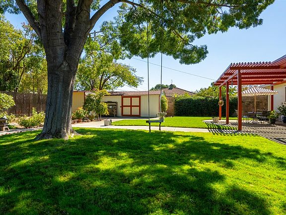 Imagine stepping back in time with this Classic Mid-Century Ranch home on a Large Lot! This Single Level Layout offers a Spacious Dining/Living room highlighted by a cozy fireplace with gas stove and stunning backyard views that seamlessly bring the outdoors in. Beautiful hardwood floors. The charming kitchen is equipped with a vintage 1935 Wedgewood gas stove, stylish backsplash tile, and ample storage, making it a perfect space for cooking and entertaining. Adjacent to the kitchen is an exceptionally large laundry room with lots of storage, a utility sink, for everyday convenience. Many updates enhance this home's appeal, including brand new Anderson windows on the front and fresh exterior and interior paint. Additional upgrades include attic insulation and a whole house fan, ensuring energy efficiency and comfort year-round. Enjoy outdoor living with a yard bursting in vibrant bulbs & blooming flowers every springtime! The backyard also features a beautiful pergola, as well as a two large sheds with window electric & lighting for storage or hobbies. Maintenance is effortless with leaf guard gutters, and the automatic sprinkler system with timer keeps the new sod and landscape lush. This home beautifully combines classic charm with thoughtful modern updates!