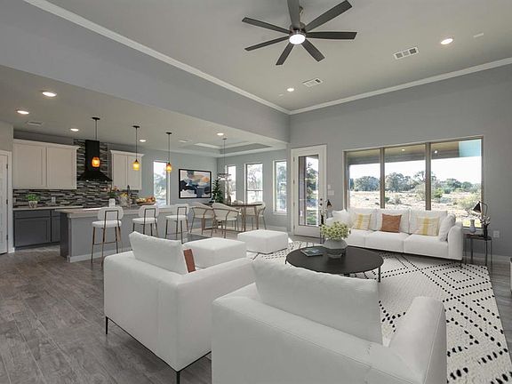 Never occupied, built in 2023 high quality build nestled within the serene beauty of Horseshoe Bay, this exceptional single-story home presents a heaven of comfort and elegance, this charming 3 bedrooms, 2 and a half baths plus an office and a good size utility room. The kitchen opens to an elegant 12 feet height ceilings family room with tons of natural light, huge island kitchen with extra sitting dining space. Elegant master suite, large walk -in closet, free-standing shower, separate bathtub and dual vanity, the exterior features a beautiful, landscaped yard and fully automatic sprinkler system front and back, an inviting large, covered porch to enjoy your favorite morning/evening drinks and outcooking. The community offers it residents various amenities including access to the constant level lake LBJ with boat ramps, premier golf course, tennis courts, private pools, hiking trails