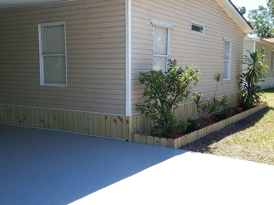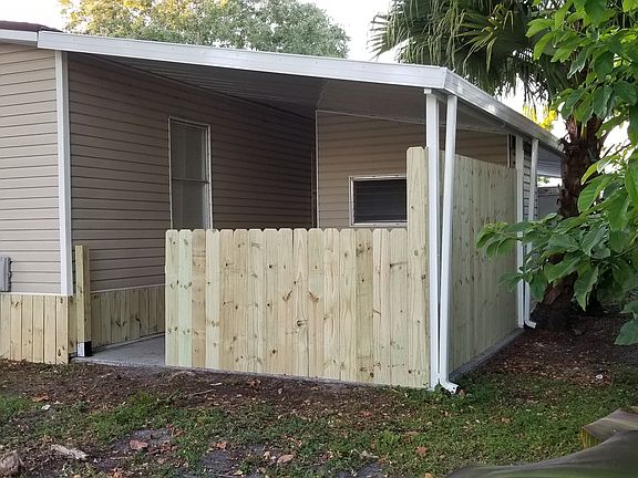 Home completely redone from floor to roof in 2018 ceiling insulated R-30, outer wall insulated R-13, New Kitchen with Appliances, Bathroom porcelain floors, laminate wood floors throughout, 5 1/2" high baseboards, LED High hats in Kitchen and living room. A beautiful Front door that leads out to covered carport and a fenced patio that overlooks a small lake. A must see to believe. Lot Rent: $795.07/Month