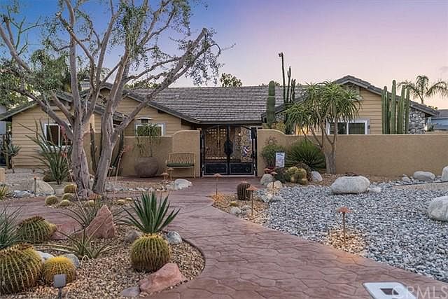 SELLER WILL CONSIDER CARRYING 1ST TRUST DEED OR CREDITING TOWARD BUYER'S CLOSING COSTS!!! For the buyer who is looking for something special, look no further. This house has it all! Once you see this property you will be so ecstatic by the amount of upgrades the sellers have added to this property. From solar to the tankless water heater, the custom entry doors, newer Low E Milguard dual paned windows, custom wrought iron gates, a soft water system, newer HVAC system, & so much more. There is not enough room to detail all of the amenities! From the moment you pull up to the curb you will be impressed with the southwest, California native landscaping. Walk to the courtyard & find beautiful stamped & stained concrete on the walkways. There is a fireplace & gathering area in the gated courtyard, even before you get to the front door! All of that enhanced by low voltage lighting. As you proceed into this gorgeous home you will be impressed with the immaculate care the owners have taken with this property. You will find a lovely living room with high ceilings, a cozy fireplace & an adjoining dining area. The kitchen has been beautifully upgraded. Newer cabinets & appliances await the gourmet chef. There are three bedrooms on one side of the home & the master bedroom on the other. One bedroom has a built in Murphy bed, perfect for guests. The hall bath is beautifully appointed. The generously sized master bedroom and bath are gorgeous. This bathroom has been exquisitely appointed with "chipped granite" accents that provide a true custom detail to the space. There is a Jacuzzi tub & separate shower as well as plenty of closet space. There is an indoor laundry room with custom cabinets. This space leads to the oversized 3 car garage which is appointed with "race deck flooring". Before you go outdoors you will find an enclosed patio that boasts both central air & heat, adding to the square footage of the home. The yard is magnificent! There is a sparkling pool & spa, water features, a built in BBQ, a raised sitting area & landscaping. There are also multiple fruit trees including grapefruit, nectarine, navel orange, apricot & more. Don't overlook the 50x16 RV parking area that is located behind gates. Plenty of room for all the toys. Plus there is a shed! This home has had approximately $500,000 worth of upgrades added over the years (per seller). Between the solar and native landscaping, you have almost no utility bills!