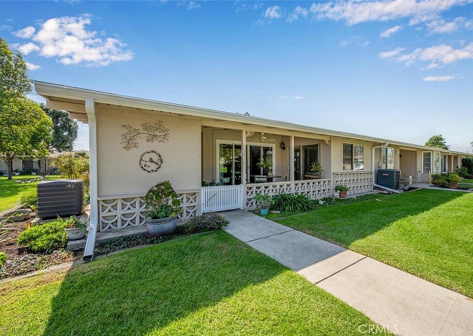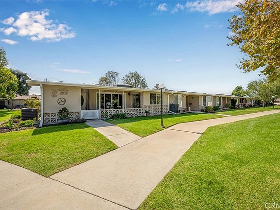 Welcome to this charming and unique 2-bedroom, 1.5-bath home in Mutual 11 – a truly special find! With a one-of-a-kind floor plan designed for both comfort and convenience, this partially expanded residence offers thoughtful upgrades and inviting spaces throughout. As you arrive, you’re greeted by a brick-style patio that overlooks a greenbelt framed by mature trees—perfect for relaxing outdoors while also having street parking immediate to the unit. Best of both worlds! Step inside to discover elegant wood-look porcelain tile plank flooring that flows seamlessly through the open living and kitchen areas. The kitchen is bathed in natural light from a large overhead skylight and features added conveniences including a built-in dishwasher and microwave. Just off the entryway, you’ll find a rare bonus: a convenient half-bath paired with a side-by-side washer and dryer—an uncommon luxury in this community. The guest bedroom features double-door entry, new carpet and a large window, offering both light and privacy. Tucked away for ultimate tranquility, the primary suite includes a spacious double-door walk-in closet, new carpet and a full bath with a shower/tub combo, new vinyl plank flooring, and another skylight overhead. Additional highlights include central HVAC, dual-pane windows throughout, and two sliding doors that open to the patio—perfect for embracing that desirable indoor/outdoor lifestyle. Come and experience the warmth, space, and unique charm that make 277L in Mutual 11 truly one of a kind. SENIOR COMMUNITY-OFFERS THE FOLLOWING AMENITIES: 9 Hole Golf Course, Swimming Pool, Jacuzzi, Gym, Table Tennis, Shuffle Board, Billiards, Pickle Ball, and Bocce Ball courts. Amphitheater, 6 Clubhouses featuring: Art Room, Sewing, Crafts, Wood Shops, Lapidary, Pool Tables, Over 200 Clubs, LWSB is a Security-Guard-Gated Community. Also Library, Friends of Library Bookstore, Credit Union, Health Care Center, Pharmacy and Post Office (CARPORT 129, SPACE 7).