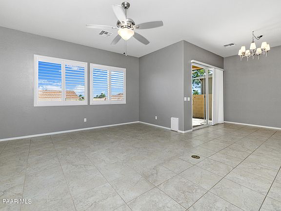 This home is in immaculate, pristine, MOVE IN ready condition! Just unpack your boxes and enjoy your new home. Huge Pantry in kitchen. Master closet has awesome CA organization. Enjoy the mountain/praire views from your covered travertine patio with retractable awning. You will love the insulated garage with additional storage cabinets and 4' front and 4' side extension! This is a beautiful MUST SEE home.New Roof in Jan 2023, OWNED Solar and water softener. Recirculating hot water heater. Newly painted interior. New gas range and microwave.
