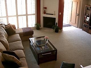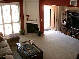 This spectacular unit is the largest flr plan that looks out onto beautiful pool & spa. Quiet, safe location TH feat. new double-pane vinyl windows throughout, smooth ceilings, Plantation Shutters, fp in Lrg LV Rm that opens onto Lrg Priv Brick Patio, Kitchen w/breakfast area & breakfast bar, Laundry Rm off Kitchen, new clear shower enclosures in both baths, new A/C unit & a 2-Car, Direct Entry Gar. Walk to Shops, Restaurants & Theaters!