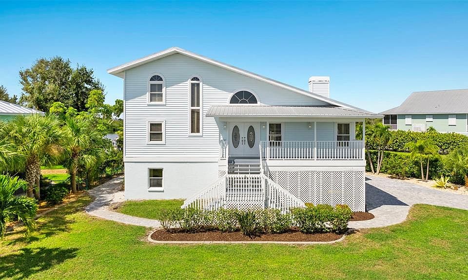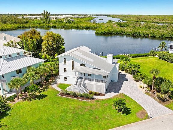 Breathtaking views can be yours from this beautiful 3 story custom home with private elevator, located on boat accessible water to Coral Creek, minutes to LGI, Bull Bay, or Boco Grande Pass. In-law suite with private entrance and kitchenette. New kitchen with farmhouse sink and top of the line cabinetry and gorgeous countertops along with hi-end designer range. Big bay window overlooking the water, a large living room features a soaring wood ceiling and fireplace. Master suite also overlooks the water with a balcony to enjoy the sunrise or sunset. Lower level includes a separate entrance and can be locked off from the upper levels, and features a 2nd kitchenette, bedroom and bathroom, and 2 large living areas or game rooms. An elevator services the first and second floors. New flooring throughout, new interior and exterior paint. Placida Pointe is a community with amazing amenities including marina, tennis, pickleball, 3 pools, 2 clubhouses, fitness, private ferry to your own slice of paradise on Little Gasparilla island with miles of white sand beaches.