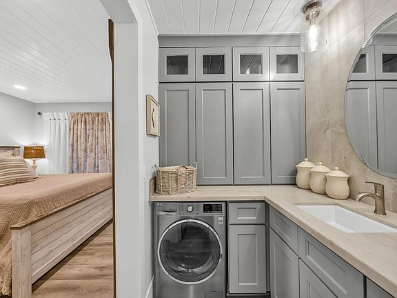 Have you been searching for the PERFECT home? This is IT! No expense was spared in the renovation of this home and every detail was meticulously addressed - luxury abounds as soon as you open the door. Some of the features include: Full-height, soft-close Florence Grey Shaker cabinets with crown molding, and a built-in refrigerator cabinet. 9 inch solid-core luxury vinyl plank flooring with built-in pad overlaid on sound-proof cork underlayment. Custom-fitted and polished quartzite countertops. Custom polished herringbone marble backsplash. All Smart Appliances: Wi-Fi controlled, fingerprint-resistant, counter-depth side-by-side stainless steel refrigerator with touch screen family hub, 6.3 cu ft. smart slide-in electric range with convection, microwave, and dishwasher. Undermount farmhouse sink with motion-controlled stainless steel faucet. 5.5 inch tongue and groove ceiling, dimmable recessed LED lighting throughout, and under-cabinet/display cabinet LED lighting. The open beam, vaulted ceilings boast the custom floor-to-ceiling fireplace with 60'' remote-controlled electric fireplace, flatscreen ready with power and HDMI outlets built into the fireplace. Washer/Dryer combo in the bathroom! No expense was spared!