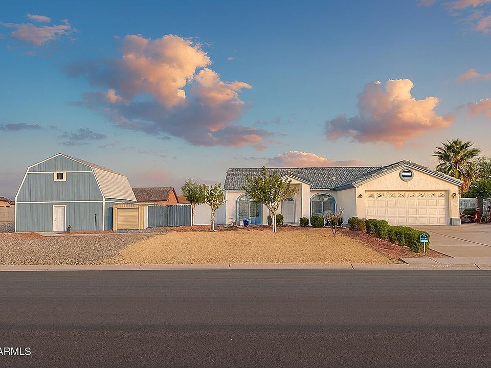 Experience spacious living and endless possibilities on this huge lot featuring a 2018-built 30x25 barn with a cement foundation, loft, and full 120-amp electric service. The barn boasts two roll-up doors and power for the RV awning, perfectly suited for your hobbies or storage needs. Additional highlights include a 10x10 shed, a generously sized RV shed, and two convenient RV gates with a massive cement driveway for easy access. Enjoy a beautifully maintained backyard with lush grass enclosed by a sturdy block fence, all without the restrictions of an HOA. Freshly updated with new exterior and interior paint, this property combines functional space and modern appeal—perfect for those who want room to grow and play.