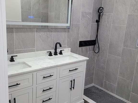 Fully renovated one family with four bedrooms and four and half bathrooms. Two master bedrooms with full baths and double sinks. Custom kitchen with quartz backsplash, pot filler and built in microwave. Fully finished basement with separate side entrance. New driveway and sidewalk. Central heating and cooling. Fully detached 100% brick with a huge backyard and wide driveway. Extra-large living room with dining room. EASY TO VIEW.