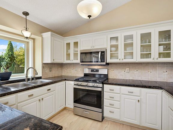 Lovely, well maintained 4-level split with 4-bedrooms, a fully fenced private backyard and a 3-stall garage. The bright, open main level features a spacious living room, renovated kitchen with white cabinets and upgraded stainless steel appliances, and an informal dining area that walks out to the maintenance free deck and flat back yard. There are three bedrooms and two bathrooms on the upper level, including a private owner's suite. The 3rd level offers a large family room, bedroom #4, as well as a 3/4 bath. On the lower level you will find a great flex space, laundry room, and ample storage. New Water Heater September 2024. Great location near restaurants, shopping, Hwy 610 and Elm Creek Park. Welcome home!