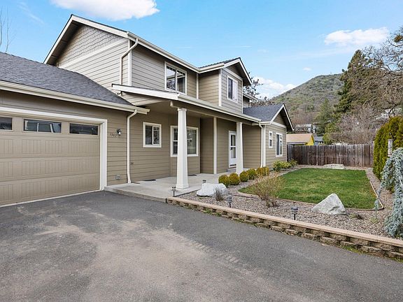 This 2005 year built 4 bed 2.5 bath 1972 SQFT house sits on a .15 AC lot in Gold Hill with an attached 2 car garage. Inside you will find a move-in ready home with tall ceilings, gas fireplace with tile surround, hardwood flooring, great room, dining room and open concept kitchen with a pantry. The dining room, kitchen, laundry room, 1 bedroom and 1/2 bathroom are on the main floor with 3 beds and 2 baths upstairs. The kitchen boasts granite countertops, stainless range, dishwasher, and microwave/hood with FRIDGE included. Recent updates include exterior and interior paint, new kitchen sink/faucet, new carpet and newer stainless steel appliances. The large master suite comes complete with a ceiling fan, ensuite with dual sink vanity, soaker tub, enclosed toilet area and walk-in closet. The backyard is divided into two separate spaces with mature trees. There is a pad for a hot tub complete with 220V power off the living room patio. Schedule a tour today!