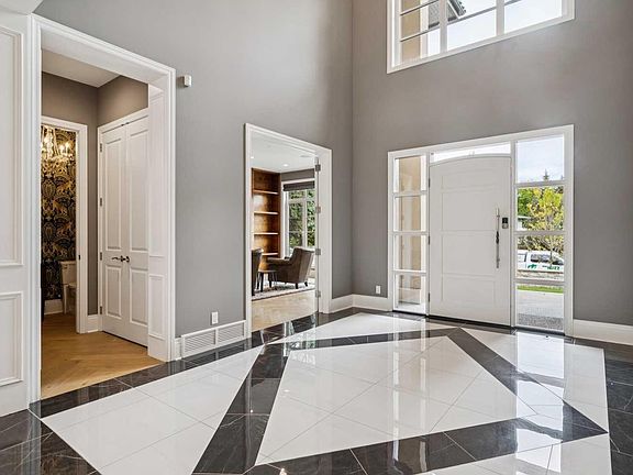 Nestled in the highly sought-after community of Bel -Aire, this expansive estate offers unparalleled luxury, meticulous design, and effortless family or multi-generational living. The home & grounds underwent an extensive renovation and addition in the past few years both inside and out. A circular drive with a water feature sets the tone for a home where every detail has been thoughtfully crafted—from showpiece chandeliers, herringbone patterned hardwood, marble floors to spaces perfectly suited for family, & guests. This home features 6 bedrooms up plus 1 in the basement, each with its own ensuite. The layout is ideal for nanny or mother – in law living, with private spaces designed for comfort, privacy and independence. A dramatic front foyer with a spiral staircase makes a striking first impression, opening to a formal dining area and a main-floor office equipped with built-ins, TV, fireplace, and a wet bar with a wine fridge. The living room is flooded with natural light from the floor-to-ceiling windows and centers around a fireplace, offering a welcoming hub for daily living and entertaining. The chef's kitchen is a true standout, featuring an abundance of cabinetry, a large island, built-in dining nook, built- in dining room hutch wall with prep sink,2 wall ovens, 2 dishwashers all seamlessly open to the family room where built-ins flank the fireplace and TV. Off the garage is a Mudroom with built in cabinets and a walk-in pantry with a sink, fridge and plenty of cabinets. Up the grand spiral staircase the primary bedroom is a true retreat with its own fireplace and TV, a vast walk-in closet with custom hanging systems, built-in dressers and a washer and dryer for convenience. The spa-like ensuite offers his-and-hers vanities, a makeup station, a jetted tub, a steam shower with smart controls all ensuring a luxurious daily routine. A few additional stairs lead to 2 upper bedrooms with a full bathroom, ideally suited for a nanny or mother-in-law suite, while the remaining four bedrooms on the upper level all feature their own ensuites and walk-in closets for ample private space. The fully finished lower level expands living areas further with a large family room, a theatre, a glass-enclosed wine room, a sixth bedroom and bathroom, Gym with a TV, extra closet and lots of storage. Out back in the yard is the ultimate of living spaces. The family is sure to enjoy evening movies gathered under cover around the Outdoor TV and fireplace. Never a shortage of activities for the family with an amazing sport court, trampoline, play structure and hot tub. While the kids are busy the adults will enjoy the outdoor kitchen featuring a wine fridge, sink, Built in BBQ and Pizza Oven. Bel-Aire is a centrally located community next to the Calgary Golf and Country Club, close to schools, shopping, restaurants, transportation and the Glenmore reservoir and pathways. This a truly rare opportunity in Calgary's luxury real estate market.