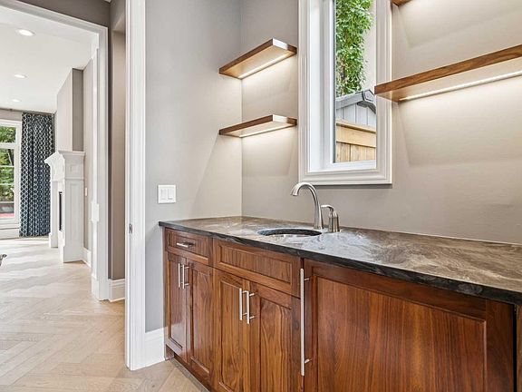 Expansive estateShowpiece chandeliersHerringbone patterned hardwoodMarble floorsFormal dining areaAbundance of cabinetryLarge island