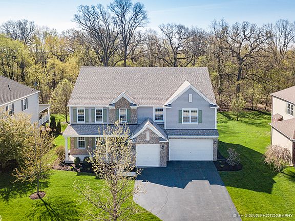 You are going to love these views! This gorgeous home in Walnut Woods backs up to wooded open area. Tranquil setting with amazing views. As you approach the home your eyes gravitate to the covered front porch and professional landscaping. You enter the home and are greeted by a spacious foyer that welcomes you to the formal living and dining room. Continue to the updated kitchen that features newer stainless steel appliances, granite counters, double oven, ceramic backsplash, can lighting, generous island and pantry. The kitchen opens to a eating are with bump out that leads to the two story family room, perfect for entertaining family and friends. Lots of light and great views of the wooded area from the windows flanked on both sides of the fireplace. This home features four spacious bedrooms, den and 3.1 baths. Full unfinished english 9' basement waiting for your ideas on how to finish. Sellers have done so many updates like windows, roof, kitchen, fresh paint and so much more
