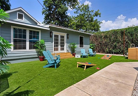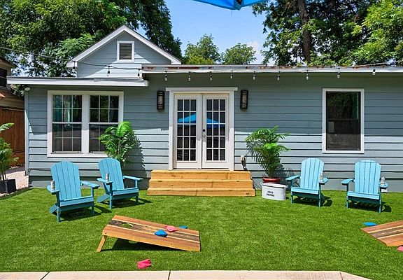 Available from 11/25- 1/21 Experience Austin from our 5BR poolside retreat. Recently renovated, centrally located, and accommodating 18 guests, it's a getaway just 5 mins from 6th Street and Warehouse Districts, with UT Austin a quick 10-minute drive away. Savor the diverse restaurant offerings nearby, grab dinner at the taco truck next door, and start your day with breakfast and coffee 1.5 blocks away. Perfect for those desiring both nightlife and city discoveries, our house ensures you're at the heart of Austin's vibran The space East Austin is an eclectic mix of fun bars, trendy restaurants and a vibrant art scene. Guests love staying here because it's incredibly convenient to get to downtown Austin, all the bars/restaurants on the East Side, and 10 minute walk from Rainey Street! But if the occasional urban quirks that come with being 5 minutes from downtown and make up the charm of the #KeepAustinWeird vibe are not your cup of tea, this may not be the best place for you. Our house have everything you need to have a great week for up to 18 guests! PLEASE NOTE: there is a separate casita in the back of the house. For bachelor/bachelorette gatherings please check out the similar 6 bedroom listing so you can rent the whole property exclusive to you! HOME OVERVIEW Location, location, location... as they say! The Chavez house sleeps 18 and has a fun backyard and private seasonal pool! We do not allow events in this house because we have a separate casita at the back that is rented out separately. However, if you are interested in having a bachelor/bachelorette at our property, we do offer a MEGA option that includes the casita when available. Please inquire for more information. SLEEPING ACCOMMODATIONS We can sleep 18 total! Bedroom 1: Two queen beds Bedroom 2: Queen bed Bedroom 3: Queen bed Bedroom 4 and 5: Bedroom 4 has a King Bed and bedroom 5 is packed with a queen bed, a full sized bed and a twin trundle (2 twins). Please note that the 4th and 5th bedrooms are combined. Unlike traditional setups, these rooms are creatively designed without a physical wall separating them, offering a truly distinctive and flexible accommodation experience. There is a full bathroom with bathtub that bedroom 4 and 5 share. Living Room: Queen fold out sectional ENTERTAINING BACKYARD Step outside to our backyard oasis, complete with a seasonal pool, a picnic table, a barbecue, Adirondack chairs and games. The pool is the perfect place to cool off on a hot day or to have a pool party. It's 13ft x 6.5ft x 3.5ft and is surrounded by a spacious backyard with plenty of seating. LIVING AREA Relax on our large sectional sleeper sofa and stream your favorite shows on our Smart TV (Roku) or hang out with your friends. Enjoy access to Netflix, Hulu, Prime Video, and Apple TV by simply entering your password. KITCHEN The kitchen is perfect for simple meal prep when you need a night in. You'll find all your basics to get breakfast, lunch or dinner on the table. Enjoy a 2-in-1 coffee maker with both Keurig and drip options. DINING You've got options! There's a small dining room that seats 4 comfortably (or squeeze 6 in!). On our better weather days you can enjoy a picnic table in the backyard or another in the front. Although we have to admit late night on weekends the taco truck next door with stellar reviews hits the spot. BATHROOMS There are 2 bathrooms both with bathtubs. One bathroom is in the hallway and the other is ensuite in the large combined room (royal blue rooms 4 and 5). Towels, hair dryers, shampoo, conditioner and body wash are provided. LAUNDRY ROOM There is a full sized washer and dryer in the laundry room. PARKING There are 3 tandem off street parking spaces in the driveway reserved for you as well as ample street parking. Two of the spots are behind the locked gate (please note: it's a narrow driveway). RESTAURANTS & BARS This beautiful home is just a 10 minute walk from Rainey Street! Whether you prefer a 3am taco truck or a fine dining establishment, you're a $10 uber away! HEATING & AC The house has a central heat and AC as well as ceiling fans. IMPORTANT REMINDERS: - Rental Agreement must be sign upon booking - rental agreement establishes all terms and conditions - A security deposit in the amount of $500 will be collected by our system prior to your stay - the deposit is not a charge but rather a hold on a credit card that is released once the property is returned with no damages. - Pool maintenance is scheduled every every Thursday during the season. Rest assured, this regular upkeep is essential to guarantee that the pool water is always clean, clear, and safe for you to use. - Garbage maintenance is scheduled every Thursday. The team will collect the trash bins from the property, and on Friday, they'll return them to their proper place. This regular service ensures that the property stays clean and well-maintained for your comfort. Other things to note For safety, there is a ring doorbell at the front door. It is active 24/7. Video and sound recording is motion activated. The home is also equipped with a decibel monitoring sensor located inside and outside of the home. It is 100% privacy compliant and is required on this property. Tampering with or disabling the ring doorbell and noise monitoring sensor will immediately cancel the reservation. Month to month lease Utilities and high speed internet included Only available through end of February