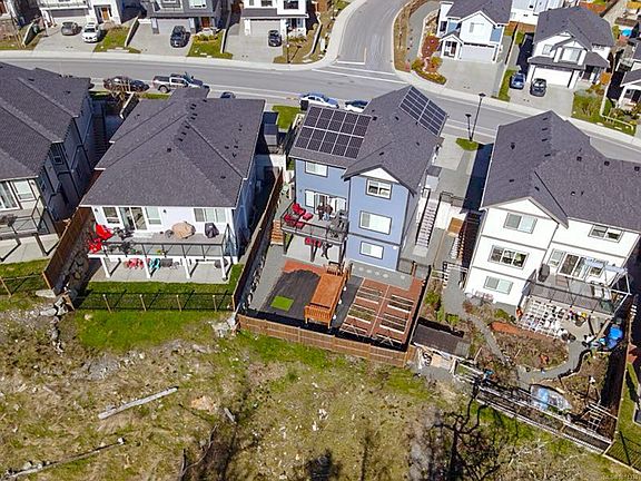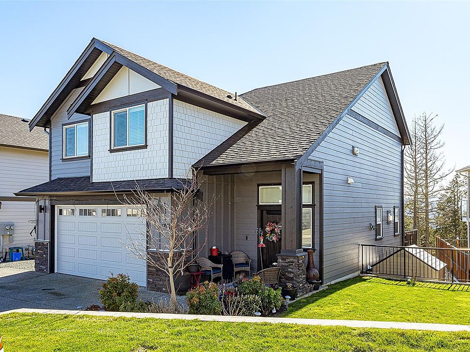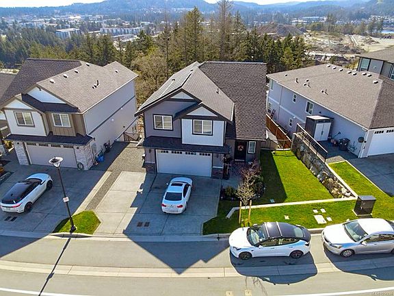 Settle into sophisticated comfort and unbeatable functionality at 1307 Flint, in South Point on Bear Mountain. This 2021-built home offers a rare and highly sought-after layout: 4 spacious bedrooms on the upper level and a quiet, legal 1-bed suite on the lowest level. Enjoy stunning south-facing views of the Olympic Mountains and peaceful parkland behind. The main floor features 9' ceilings, a bright kitchen with quartz counters, white cabinetry, s/s appliances, and gas stove, flowing into a dining/living area with gas fireplace, surround sound, and a view deck. The generous primary suite includes a walk-in closet and spa-like ensuite. Built Green and ultra-efficient with solar panels (zero hydro in main home), on-demand hot water, gas furnace, and heat pump with A/C. Landscaped yard with irrigation, veggie beds, gas BBQ hookup, and pool deck (new above-ground pool optional). Includes blinds, screens, and New Home Warranty. Close to trails, schools, and Langford’s growing amenities.