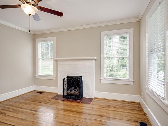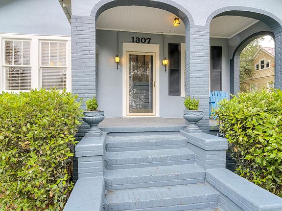 An inviting covered front porch welcomes you to linger with morning coffee or unwind as the neighborhood passes by. Inside, the home exudes warmth and charm with beautiful original hardwood floors, an original fireplace, and sunlit interiors that highlight the home's historic character. Elegant double French doors lead to a light-filled dining room, perfect for both intimate dinners and entertaining.