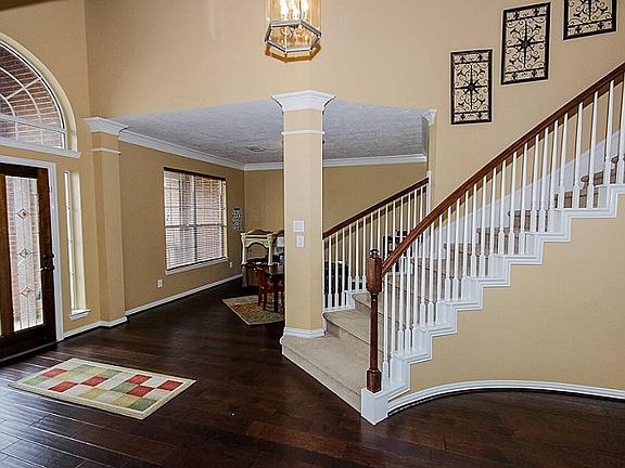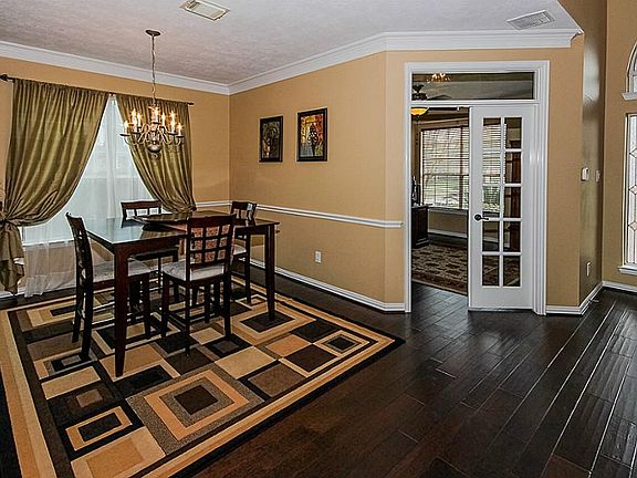 Beautiful home with a HUGE cul-de-sac lot! Sip iced tea on your front porch and watch the world go by in fabulous Gleannloch Farms. Extensive wide-plank, hardwood flooring! Soaring ceilings in the family room and large open kitchen with island plus both formals make entertaining a crowd easy! 4 bedrooms, dual staircases, gameroom, media room, and private study make this the perfect place to call home. Large patio surrounds sparkling pool to beat the Texas heat! NO BACK NEIGHBORS!