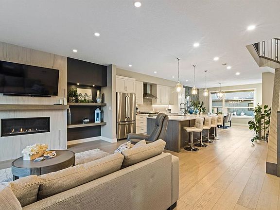 This home hits that rare sweet spot where inner city living meets nature right at your doorstep. The pathway across the street leads straight into Confederation Park, where runners, bikers, and dog walkers soak up tree-lined trails, open green space, and the kind of peace you only find outdoors. Inside, the vibe is bright, modern, and effortlessly inviting. Sunlight pours into the family room, highlighting a wall to ceiling fireplace framed by custom lit built-ins that make the space feel instantly like home. The kitchen is where everyone gathers, with a massive quartz island perfect for morning coffees or weekend dinner parties. An Italian gas stove, crisp white cabinetry, and a dining area with a bold, modern feature wall bring both style and warmth to the space. The back mudroom keeps everything organized with smart built-in storage for all the daily gear. Upstairs, the layout is thoughtfully designed for privacy and comfort, with the primary suite tucked away on one side, creating a quiet retreat for adults. Vaulted ceilings with an elegant chandelier add a touch of sophistication, while modern barn doors open into the ensuite for a stylish finish. The ensuite feels like a spa getaway with a freestanding tub, dual sinks, and a walk-in shower with a bench. On the opposite side of the upper level are two spacious bedrooms and a four-piece main bath, perfectly set up for kids or guests, with the laundry room conveniently located between the two wings. Downstairs, it’s pure fun with a walk-up wet bar and a large recreation room perfect for movie nights or hosting friends, along with an extra bedroom, full bath, and plenty of storage. Out back, the low-maintenance concrete stone patio is ideal for summer evenings under the stars and connects to the double detached garage. With nature’s best playground just steps away and a home designed for connection, comfort, and everyday style, this one truly has it all.