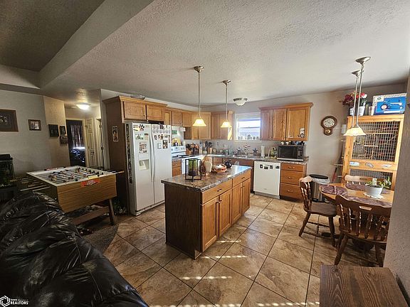 This ranch style home was built by SWCC and is situated on nearly half an acre of land on the edge of Creston. It has an open floor plan with a gas fireplace in the living room. The main floor has three bedrooms and two full bathrooms, while the basement has two more bedrooms and a full bathroom. The mudroom includes a front-loading washer and dryer that are included in the sale. In addition, the basement features a spacious family room complete with a pool table. The two-car garage is quite spacious and has an extra area that could be used as a workshop. The shed has a loft and a doggie door area. If you are interested in viewing this lovely home, please call for an appointment today!