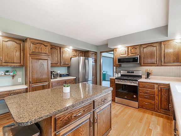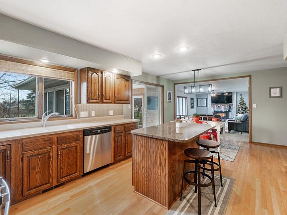 Just what you've been looking for! If you’ve been waiting for a move-in ready home in this quiet market, wait no longer. This five-bedroom and 2 and a half bath home is located in the Hickory Heights addition, which is an established and quiet neighborhood. The front of the home shows off brick accent and landscaping. Nice hardwood floors throughout with carpeted areas. The main floor features a den, formal dining room, kitchen with an additional dining area, living room, and a half bathroom. The kitchen is spacious with an island, desk, and good storage. Cozy up to the gas fireplace in the living room. One of the home's favorite features is this beautiful three-season room, featuring views of the entire backyard. From here, head out back to the patio! There is a newly poured concrete patio with a gas fire pit. You are sure to get a ton of use out of this spot! Just off the property, in the backyard, is a secluded neighborhood park with a playgroup and basketball court. What a lovely space. The second floor you will find four bedrooms and a full bath in the hallway, master bedroom features a 3/4 bath and a walk-in closet. The basement has a large living area, with space to be used as a nonconforming 5th bedroom. Spacious storage/mechanical area. The laundry area is in the basement, although there is a hookup near the main-floor entryway if the main-floor laundry is desired. Recent updates include a new patio and gas fire pit in 2021, two new side doors in 2022, a water softener in 2021, a furnace in 2017, a water heater in 2014, and radon mitigation in place. This home is a great opportunity! Don’t miss the chance to make it your own.